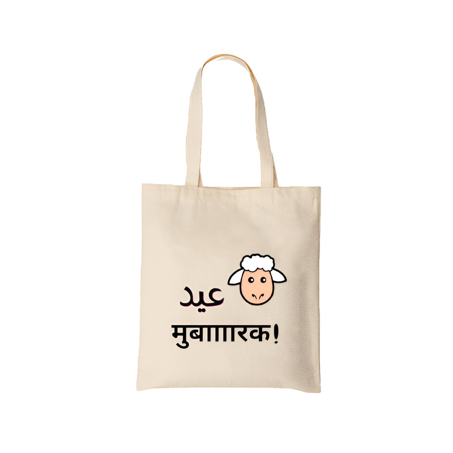 "حقيبة التسوق القطنية - "عيد مبارااااك! - إنكليزي/ هندي
